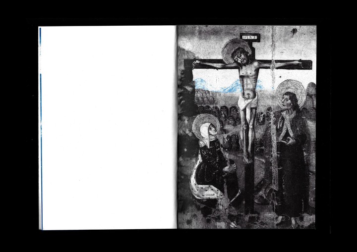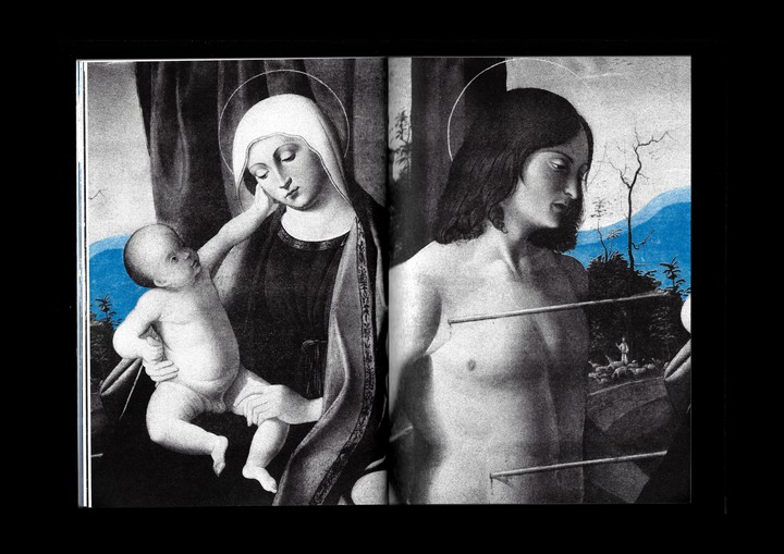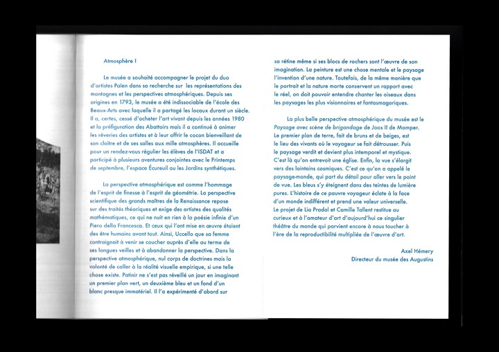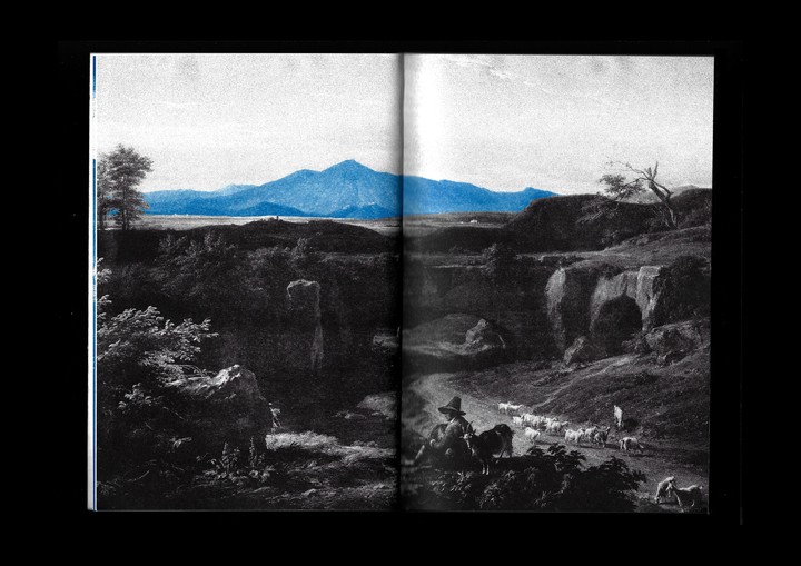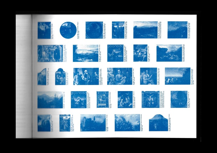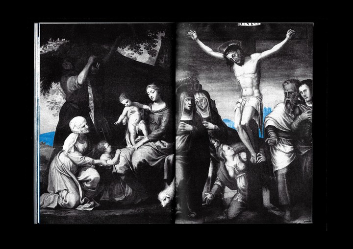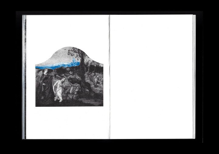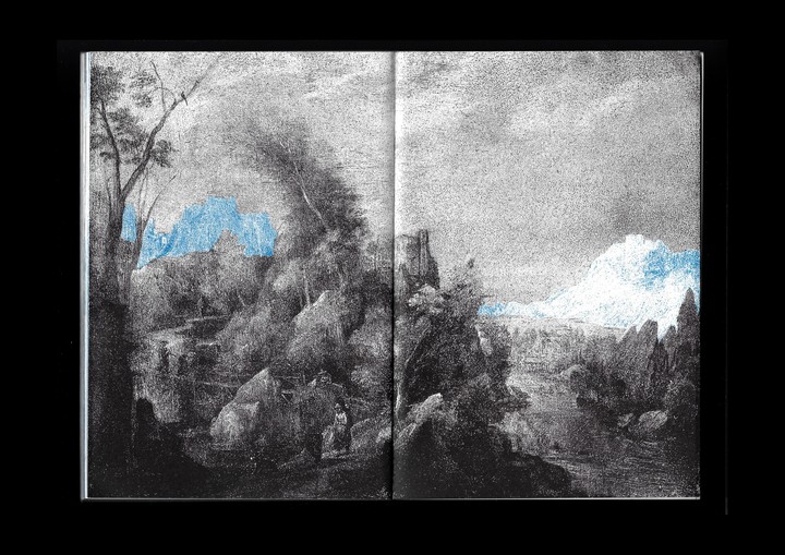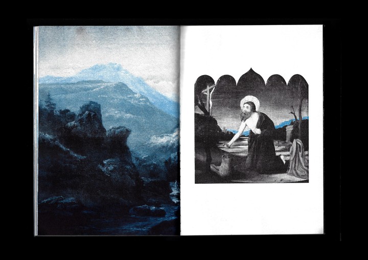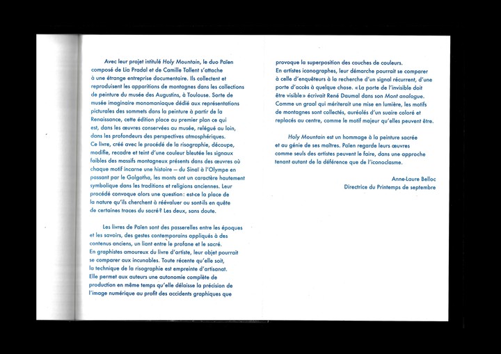 Catalogue alternatif, Holy Mountain est une relecture de peintures issues des collections du Musée des Augustins. Ce livre s’appuie sur les effets chromatiques de la perspective aérienne, une technique picturale popularisée à la Renaissance qui consiste à marquer la profondeur de champ par des dégradés de couleurs. S’intéressant aux montagnes – paysage lointain récurrent – Holy Mountain ouvre notre oeil à ces détails relégués au dernier plan des strates narratives des peintures religieuses.
