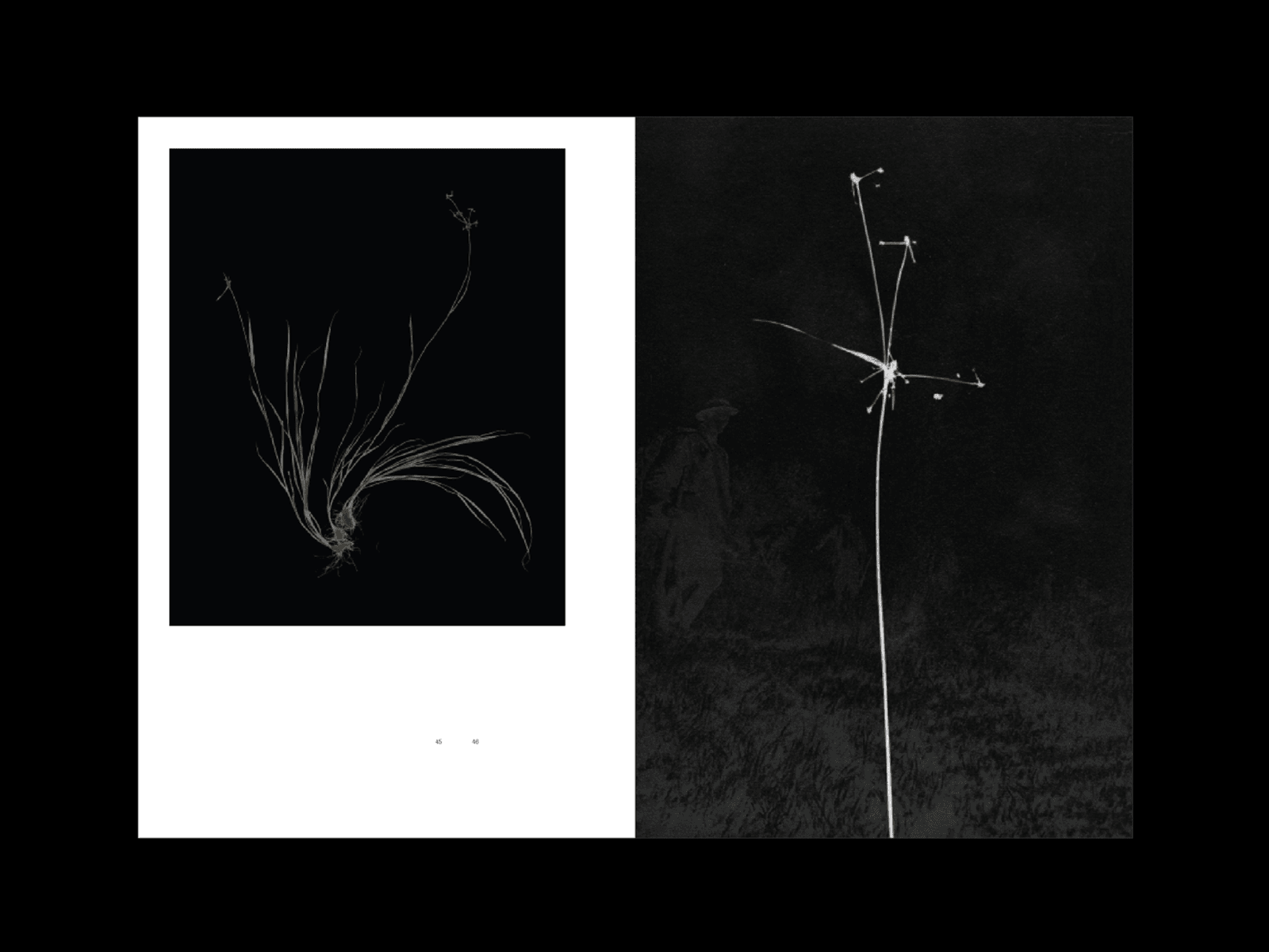 Pensé comme un herbier contemporain, le livre se déploie en deux volumes : le premier, purement visuel, présente une suite d’images sans légendes, ordonnées dans l’ordre alphabétique des espèces rencontrées. Les différents corpus d’oeuvres de Sophie Zénon - photogrammes, empreintes, paysages recomposés, sculptures ou fragments d’archives - s’y entremêlent dans une forme libre où la transparence du papier fait affleurer la mémoire, la trace, le fantôme. Le second volume, véritable cahier d’accompagnement, rassemble textes, entretiens et index, offrant les clés scientifiques et poétiques du projet.